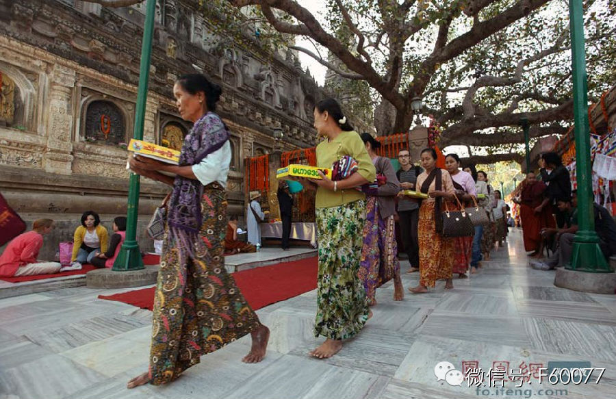 围绕大塔还有百塔、牧女善生供奉乳粥和释迦牟尼影窟等遗址,以及20世纪初以来中国、日本、缅甸、斯里兰卡、泰国、不丹、尼泊尔、孟加拉国、越南等国修建的二十多座佛庙。徜徉在佛庙群中,你会发现,佛虽然源于印度,但传播于各国期间都容进了各国特色,不仅佛庙建筑格式不同,就是佛像也不尽相同,印度佛像显得鼻子稍大,面部显长,威严之气十足;中国、日本的佛像则鼻子显小,脸盘圆润温和;泰国则是四面佛。中国佛庙是典型的汉式建筑,叫“中华大觉寺”,虽然规模不大,但弥漫着十足的“中国味”,让人倍感亲切。
